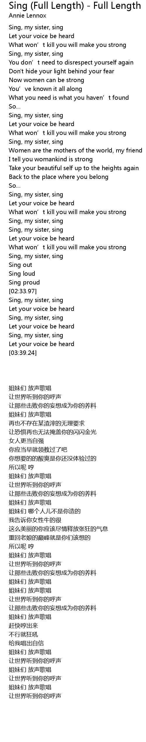 | [02:50.91] | Sing, my sister, sing |