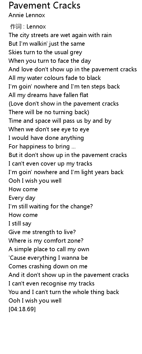 | [00:50.23] | And love don' t show up in the pavement cracks |