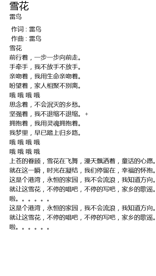 | [03:17.870] | 就让这雪花,不停的唱吧,不停的写吧,家乡的歌谣。 |