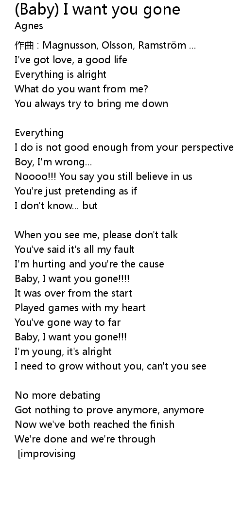 | Baby, I want you gone!!! | |