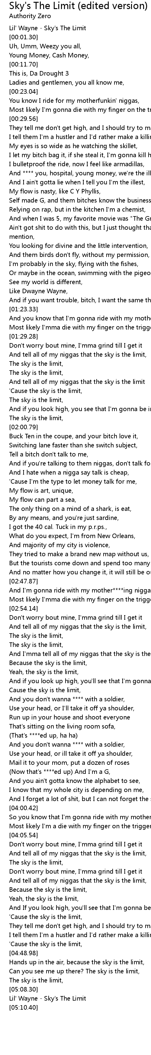 [02:57.29] And tell all of my niggas that the sky is the limit,