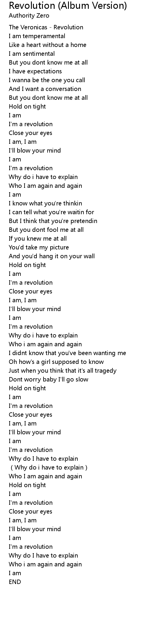 | [00:49.63] | I' m a revolution |