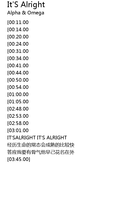 | [03:20.00][02:48.00][01:09.00] | o IT' S ALRIGHT IT' S ALRIGHT |