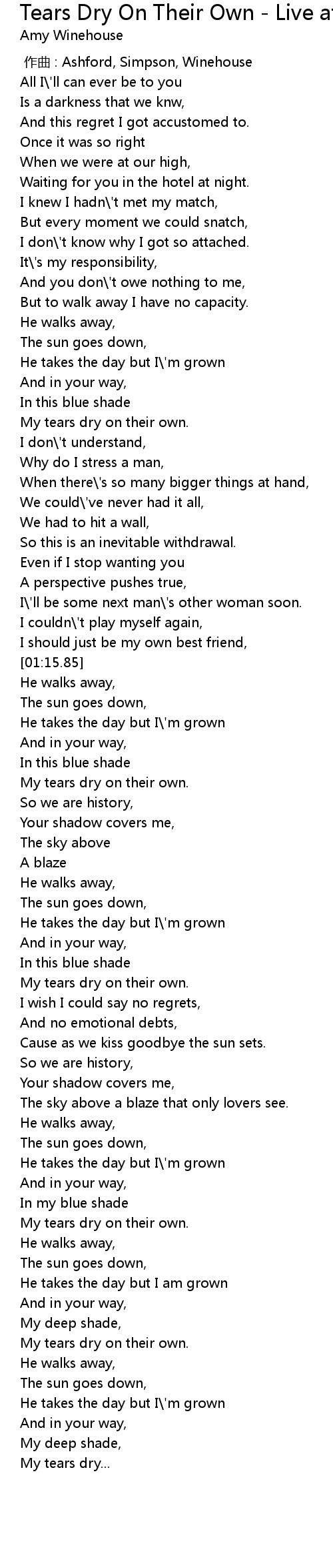 | [00:43.80] | My tears dry on their own. |