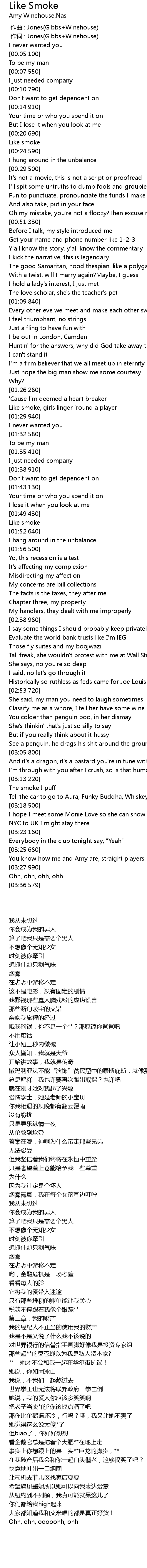 | [00:01.00] | 作词 : Jones(Gibbs+Winehouse) |