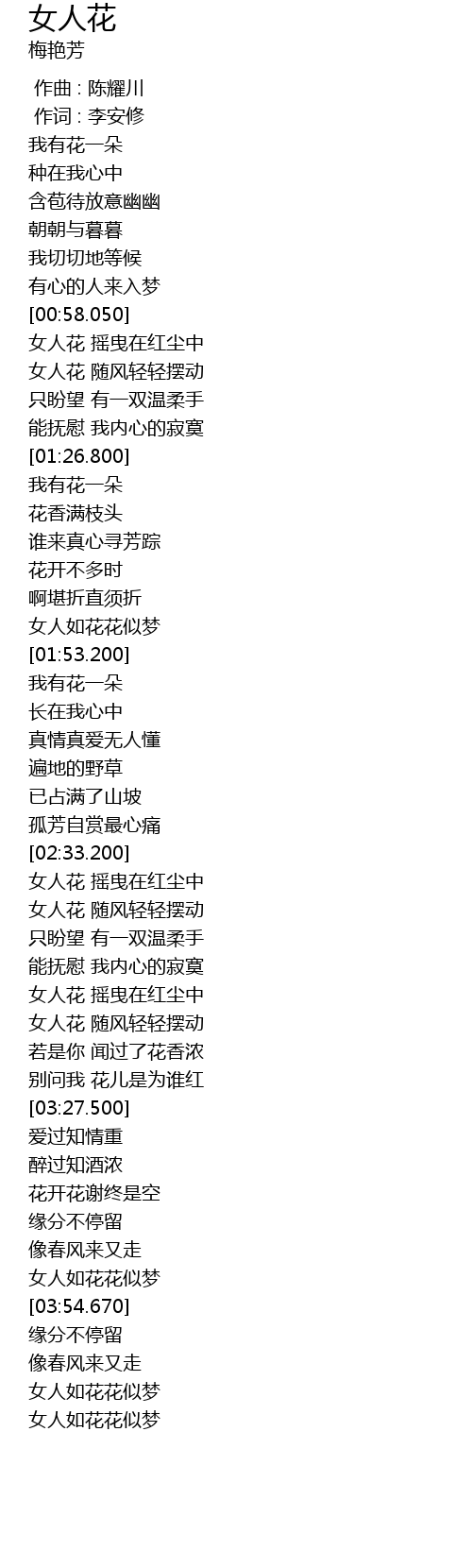 | [04:01.940] | 女人如花花似梦 |