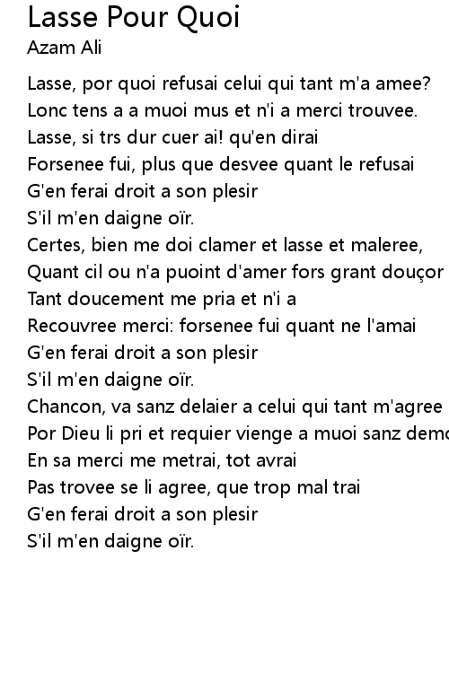 | Lasse, si trs dur cuer ai! qu'en dirai | |