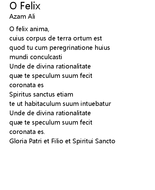 | Song | O Felix |