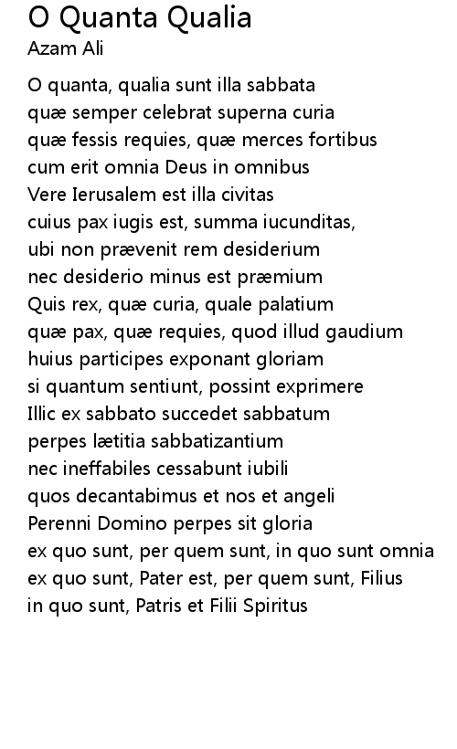 | Song | O Quanta Qualia |