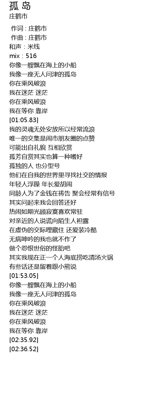 | [02:04.15] | 我像一座无人问津的孤岛 |