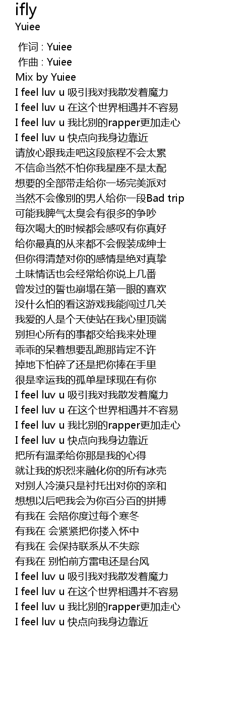 | [00:36.513] | I feel luv u wo bi bie de rapper geng jia zou xin |