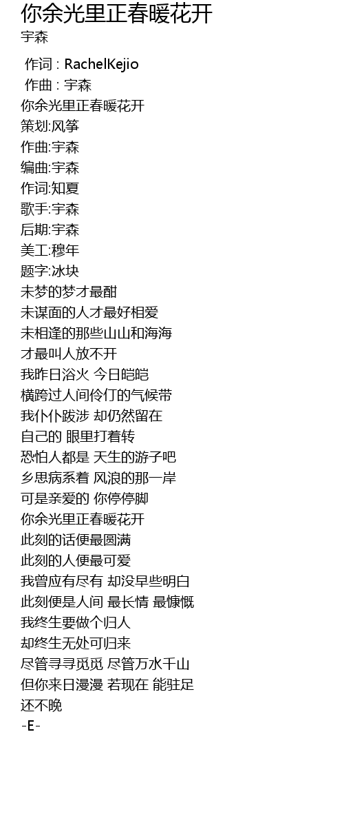| [00:03.941] | ni yu guang li zheng chun nuan hua kai |