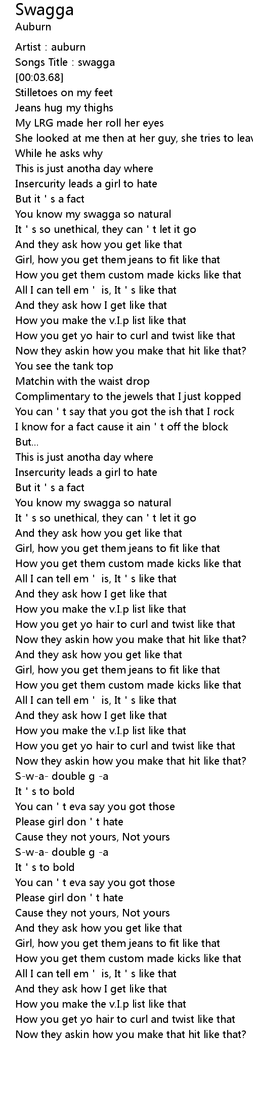 | [01:49.44] | Girl, how you get them jeans to fit like that |
