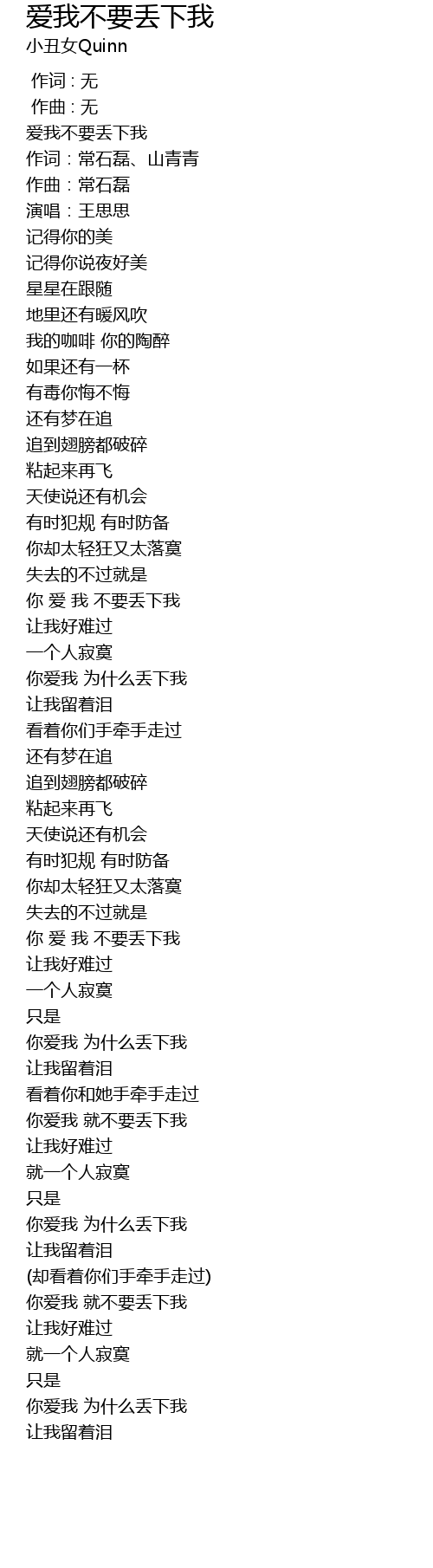 | [01:40.669] | nǐ ài wǒ bú yào diū xià wǒ |