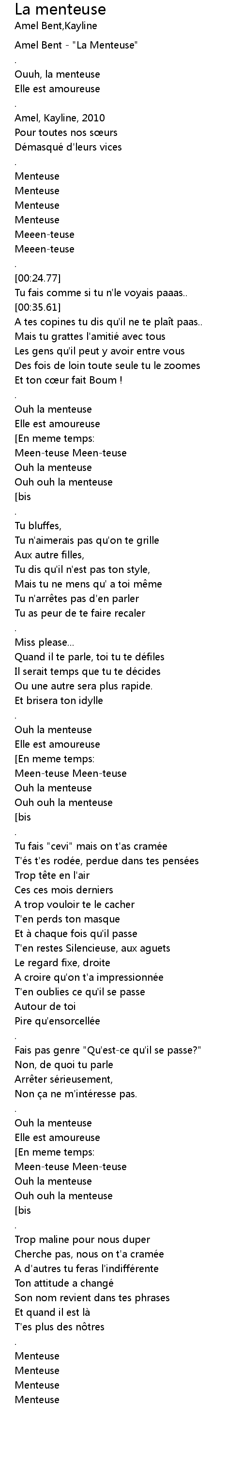 | [00:00.25] | Amel Bent - "La Menteuse" |