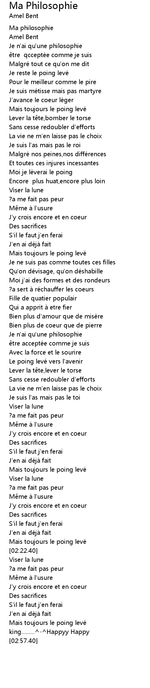 | [00:04.46] | Je n'ai qu'une philosophie |