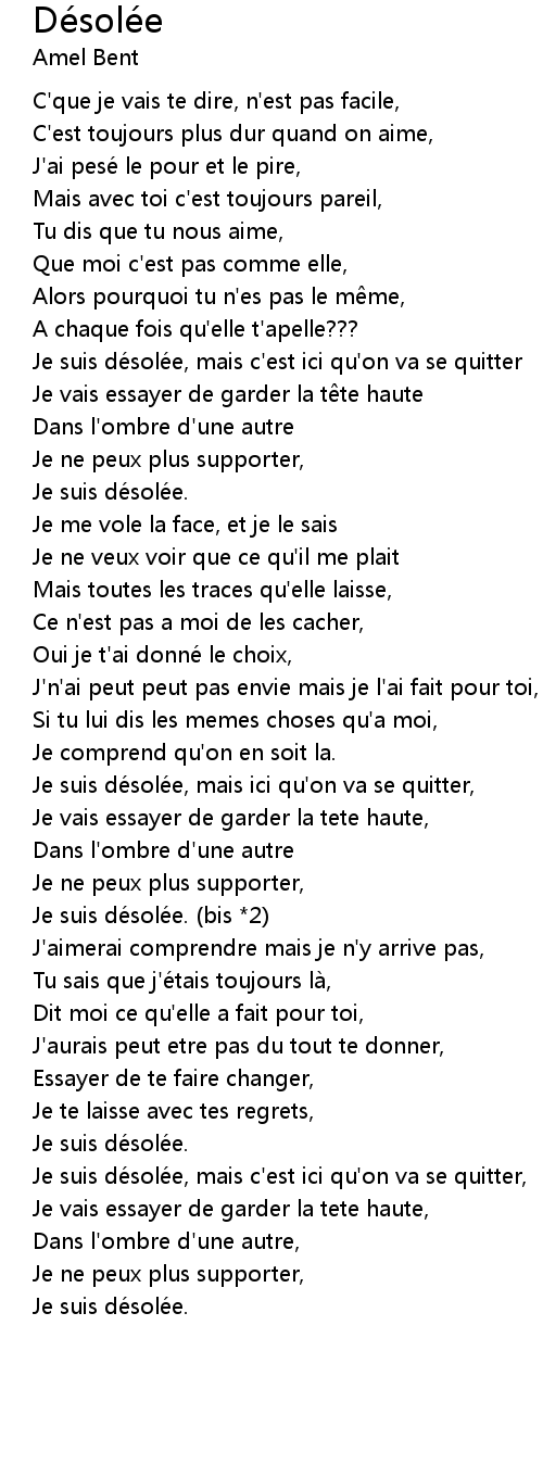 | Je suis dé solé e, mais ici qu' on va se quitter, | |