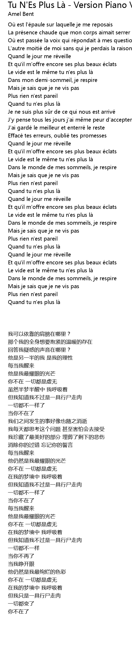 | [00:53.27] | Le vide est le m me tu n' es plus la |