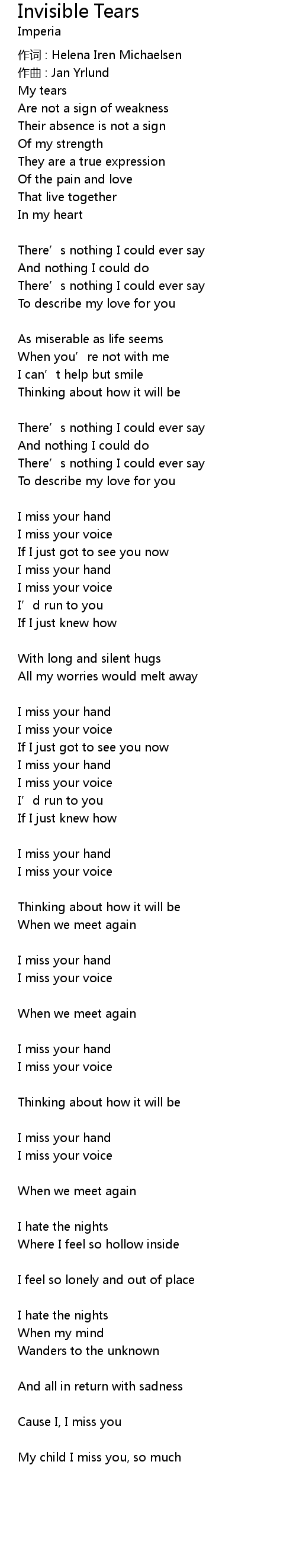 | 作词 : Helena Iren Michaelsen | |