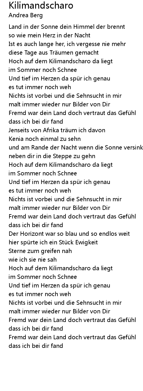 | Song | Kilimandscharo |