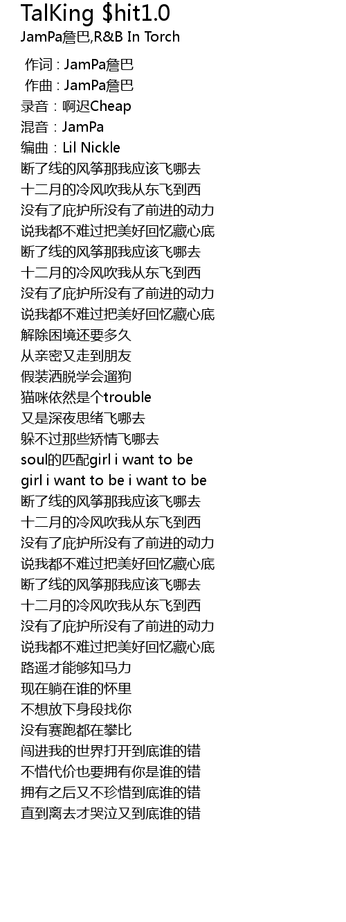 | [00:00.000] | 作词 : JamPa詹巴 |