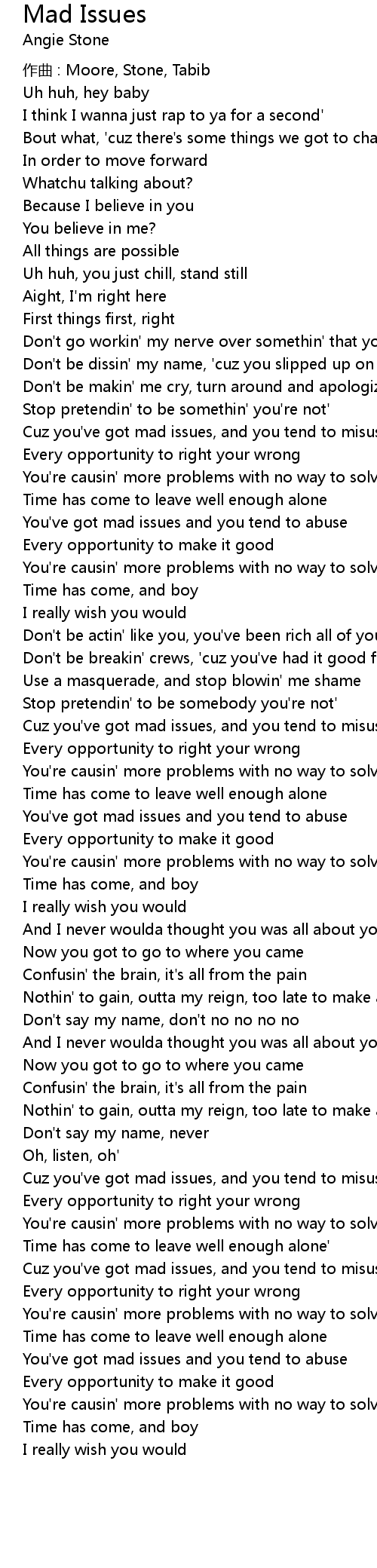 | Cuz you've got mad issues, and you tend to misuse | |