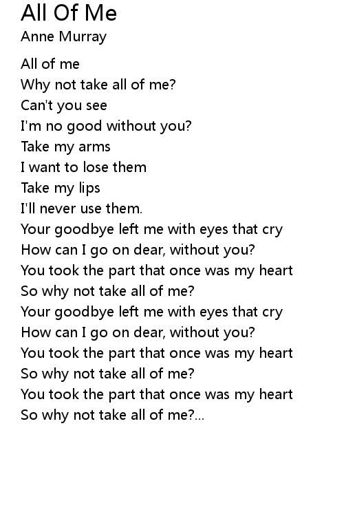| So why not take all of me?... |