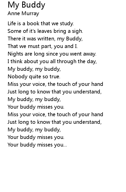 My buddy, my buddy, |