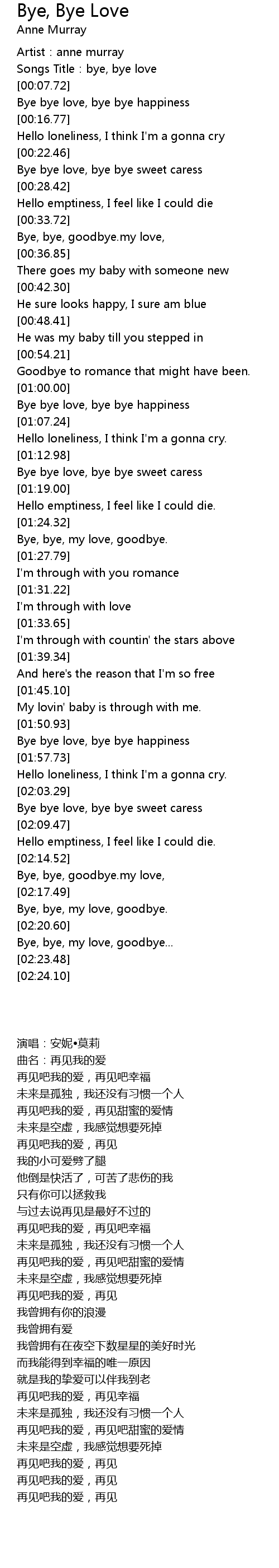 | [02:15.70] | Bye, bye, goodbye. my love, |