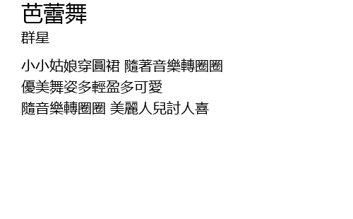 | 小小姑娘穿圓裙 隨著音樂轉圈圈 | |