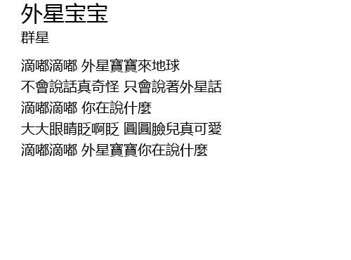 | 不會說話真奇怪 只會說著外星話 | |