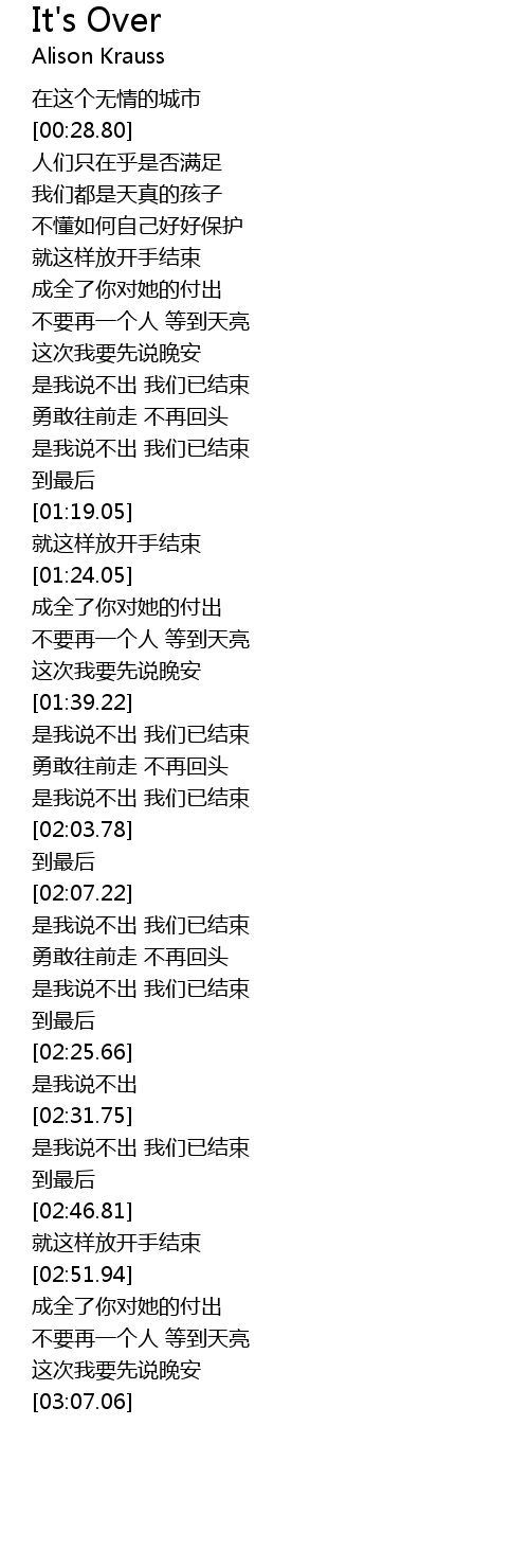 | [01:11.36] | 是我说不出 我们已结束 |