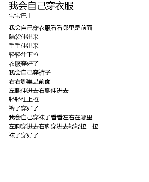 | [00:08.228] | 我会自己穿衣服看看哪里是前面 |