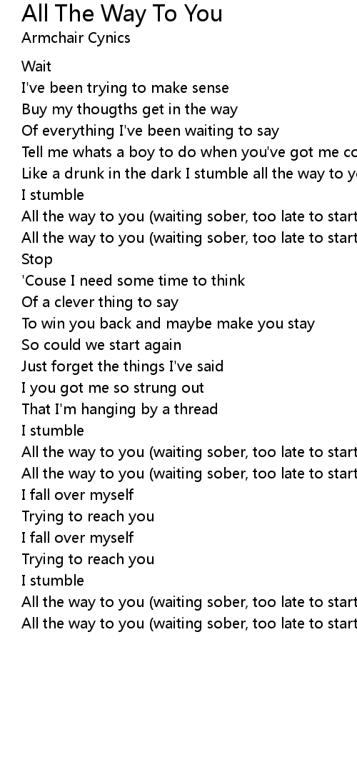 All the way to you (waiting sober, too late to start over) |