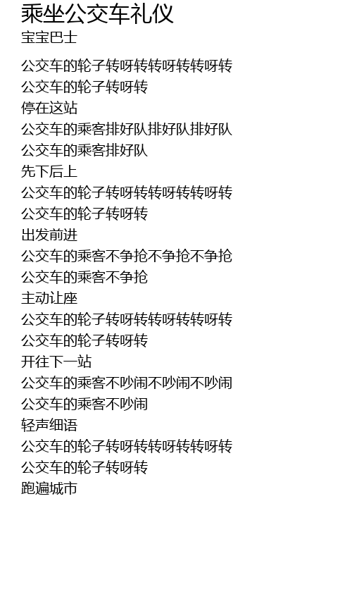 | [00:10.789] | 公交车的轮子转呀转转呀转转呀转 |