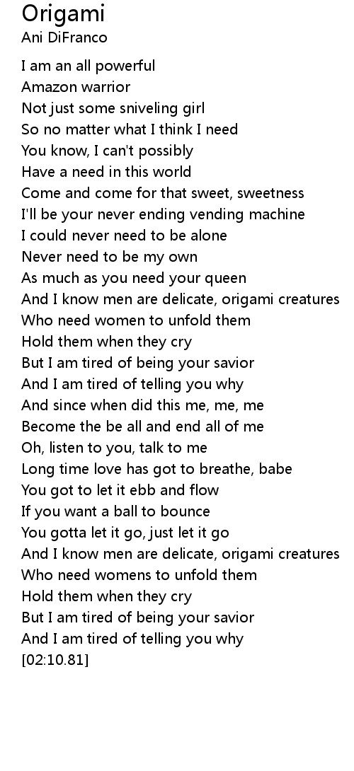 And I know men are delicate, origami creatures |