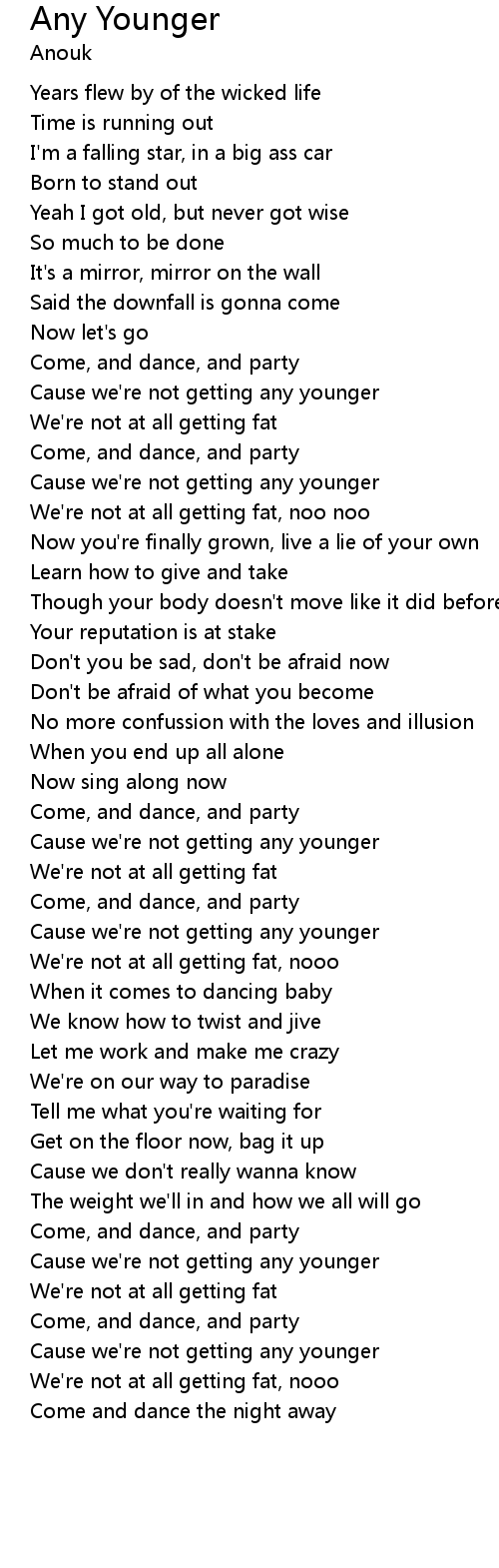 Cause we're not getting any younger |