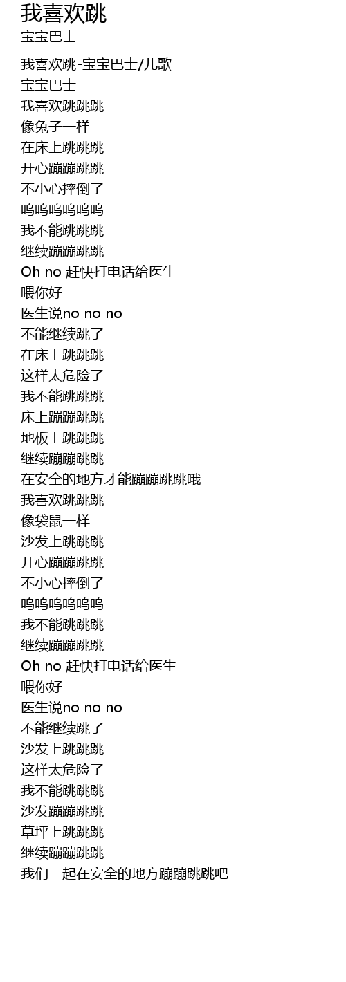| [00:00.00] | 我喜欢跳-宝宝巴士/儿歌 |