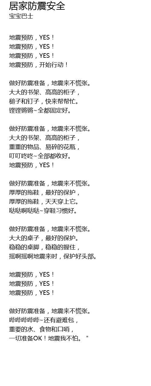 | yáo a yáo a dì zhèn lái shí, bǎo hù hǎo tóu bù. | |