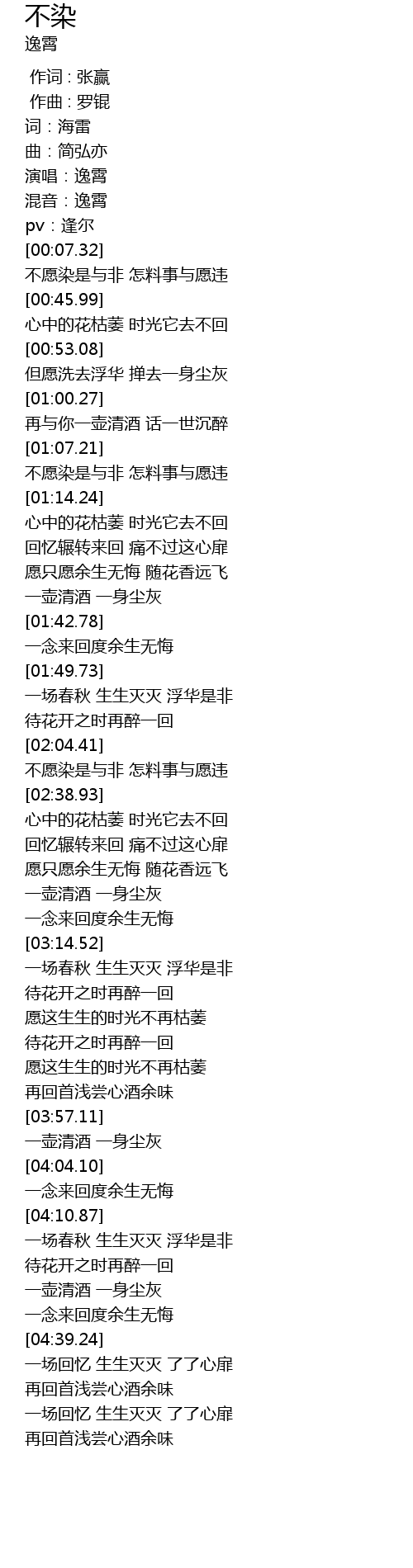 | [01:07.82] | 不愿染是与非 怎料事与愿违 |