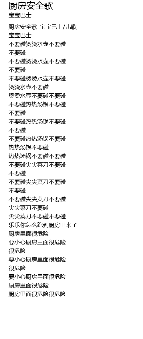 | [00:00.00] | 厨房安全歌-宝宝巴士/儿歌 |