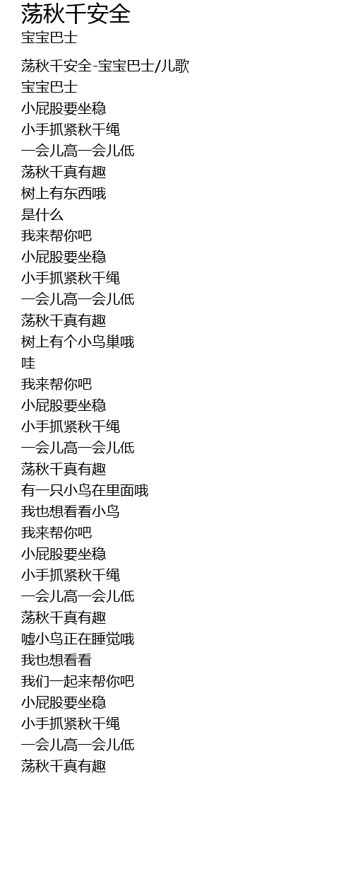 | [00:00.00] | 荡秋千安全-宝宝巴士/儿歌 |