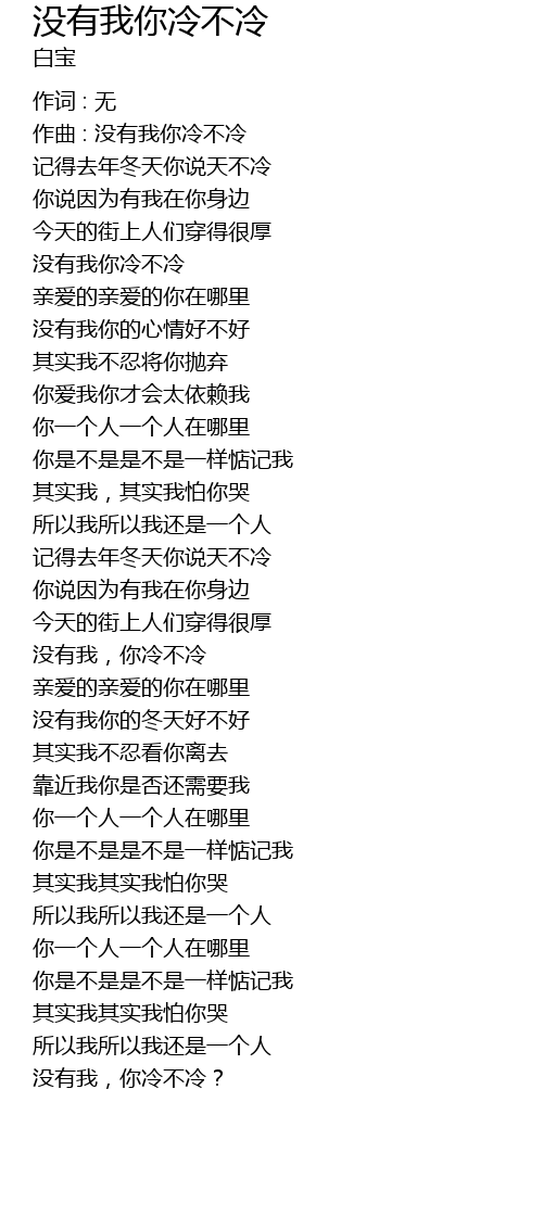 | zuò qǔ : méi yǒu wǒ nǐ lěng bù lěng | |