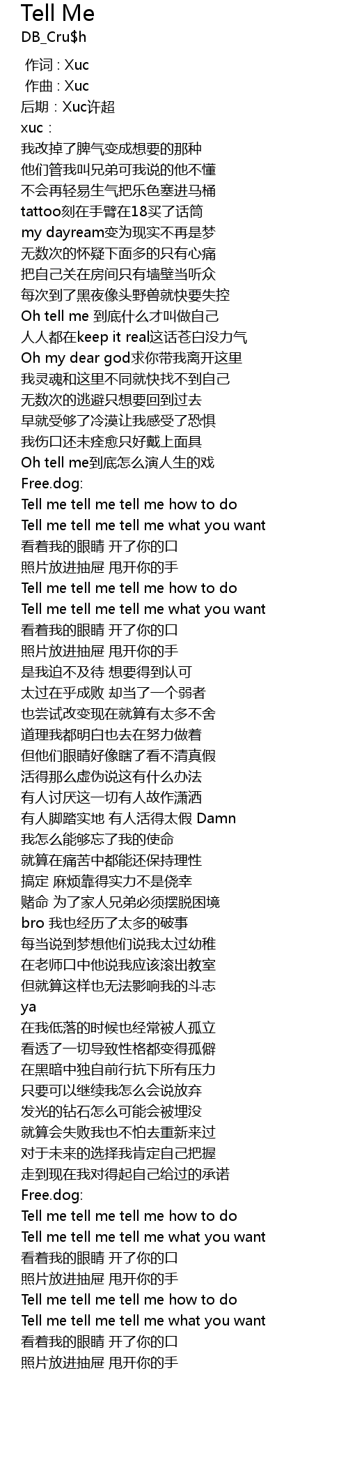 | [02:32.834] | Tell me tell me tell me what you want |