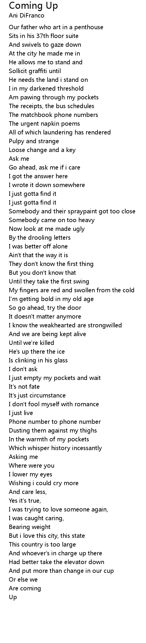 Coming Up Lyrics