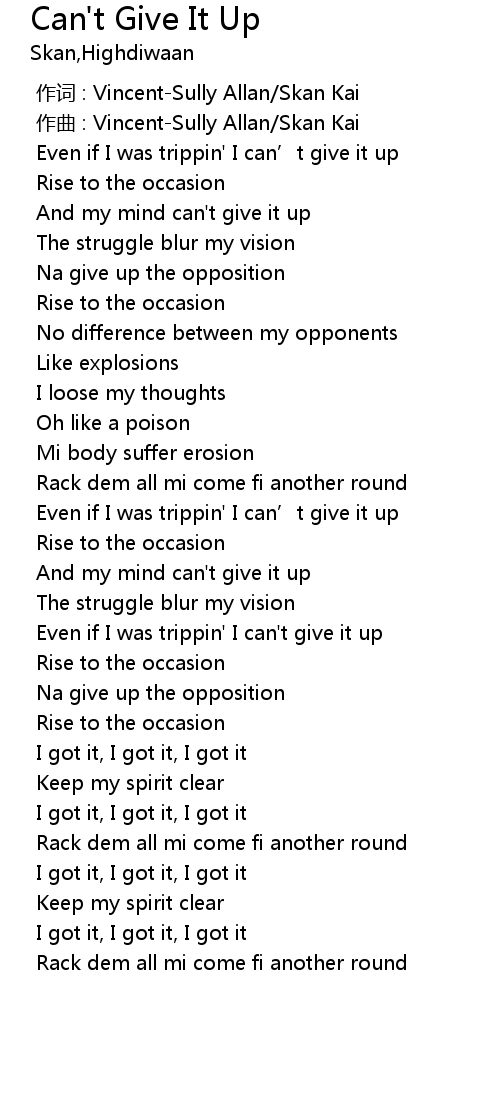 | [00:20.232] | Na give up the opposition |