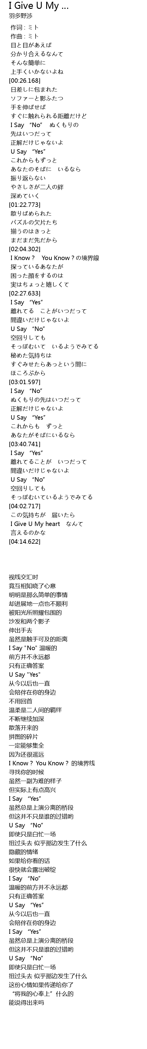 | [03:30.797] | U Say “Yes” |