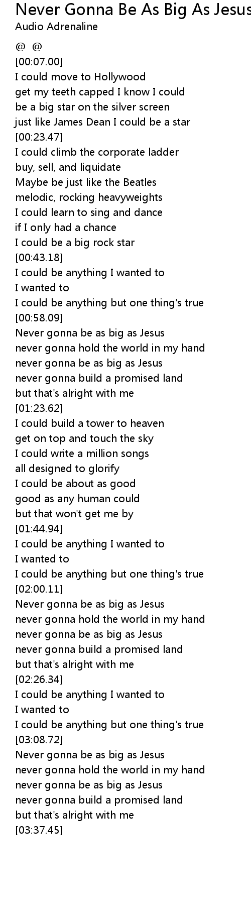 Never Gonna Be As Big As Jesus Lyrics