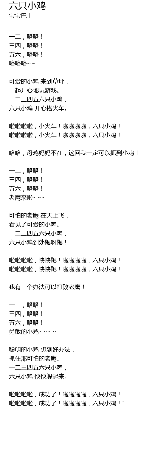 | 啦啦啦啦,小火车!啦啦啦啦,六只小鸡! | |