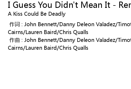 | [00:00.000] | 作词 : John Bennett/Danny Deleon Valadez/Timothy Floyd/Kelly Cairns/Lauren Baird/Chris Qualls |